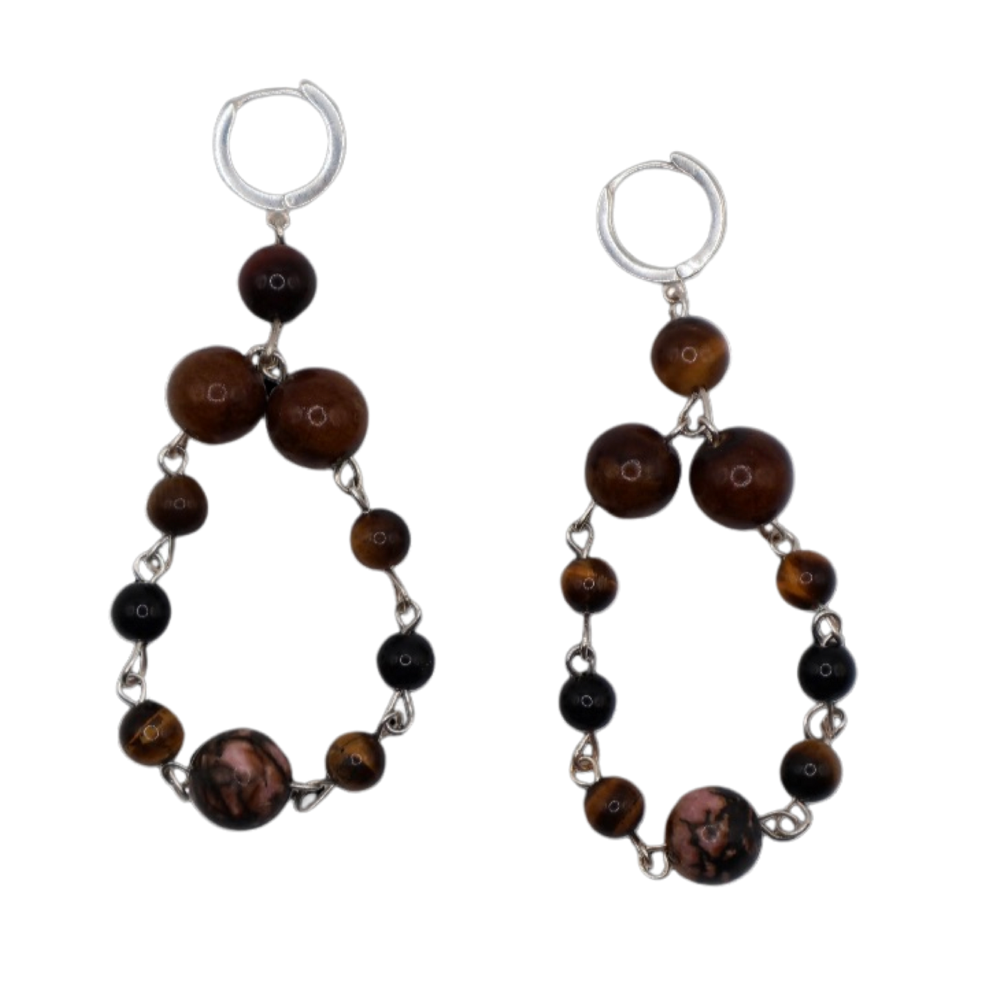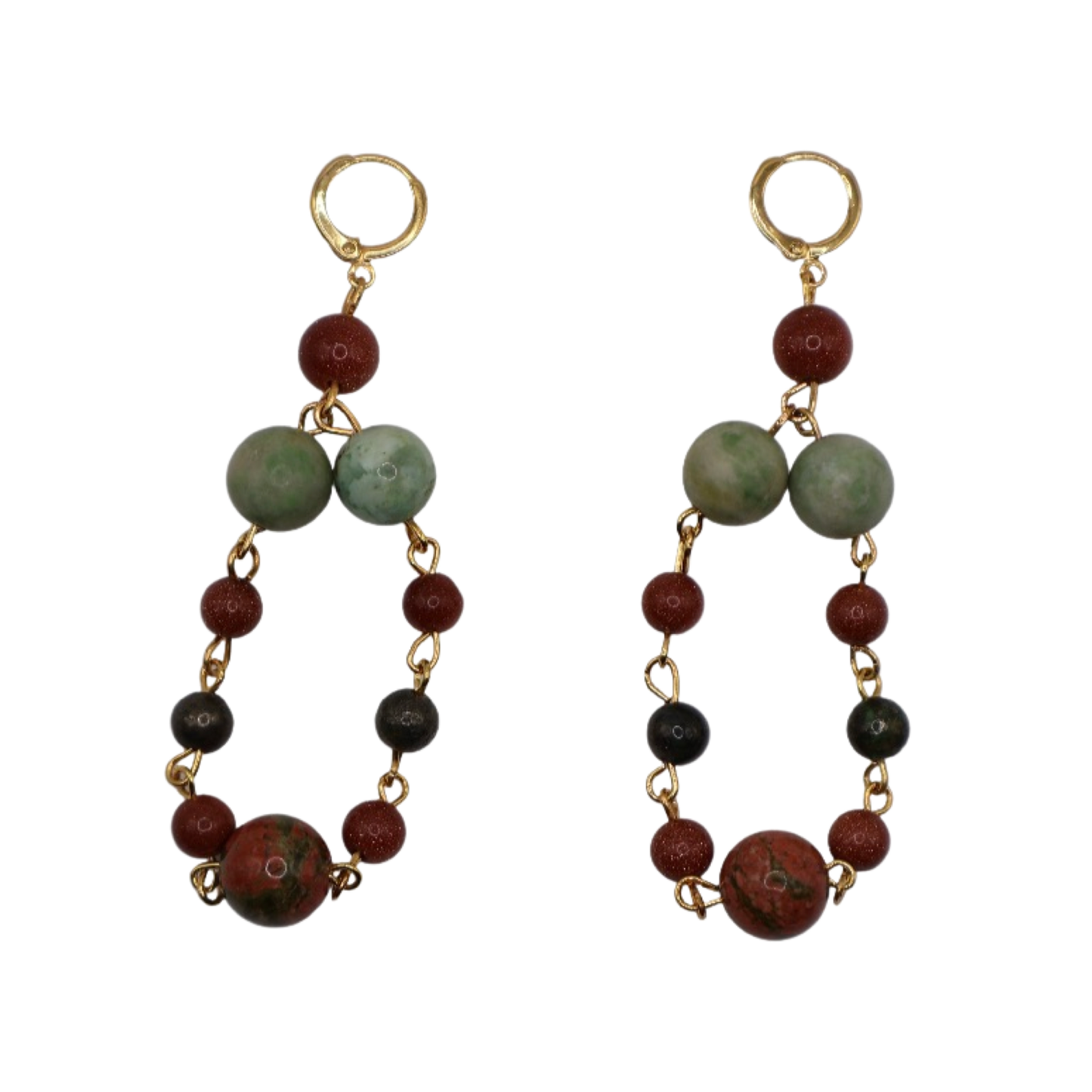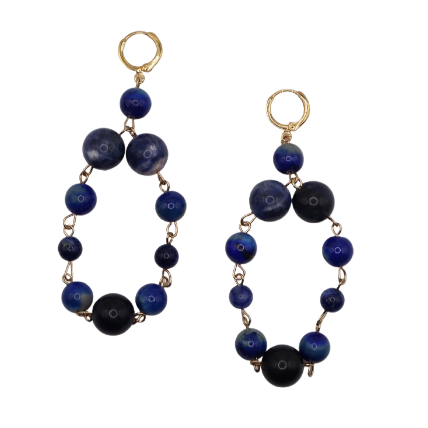 Stone beads form an open hoop silhouette. Available in multiple stone colorways for a bold yet balanced look.