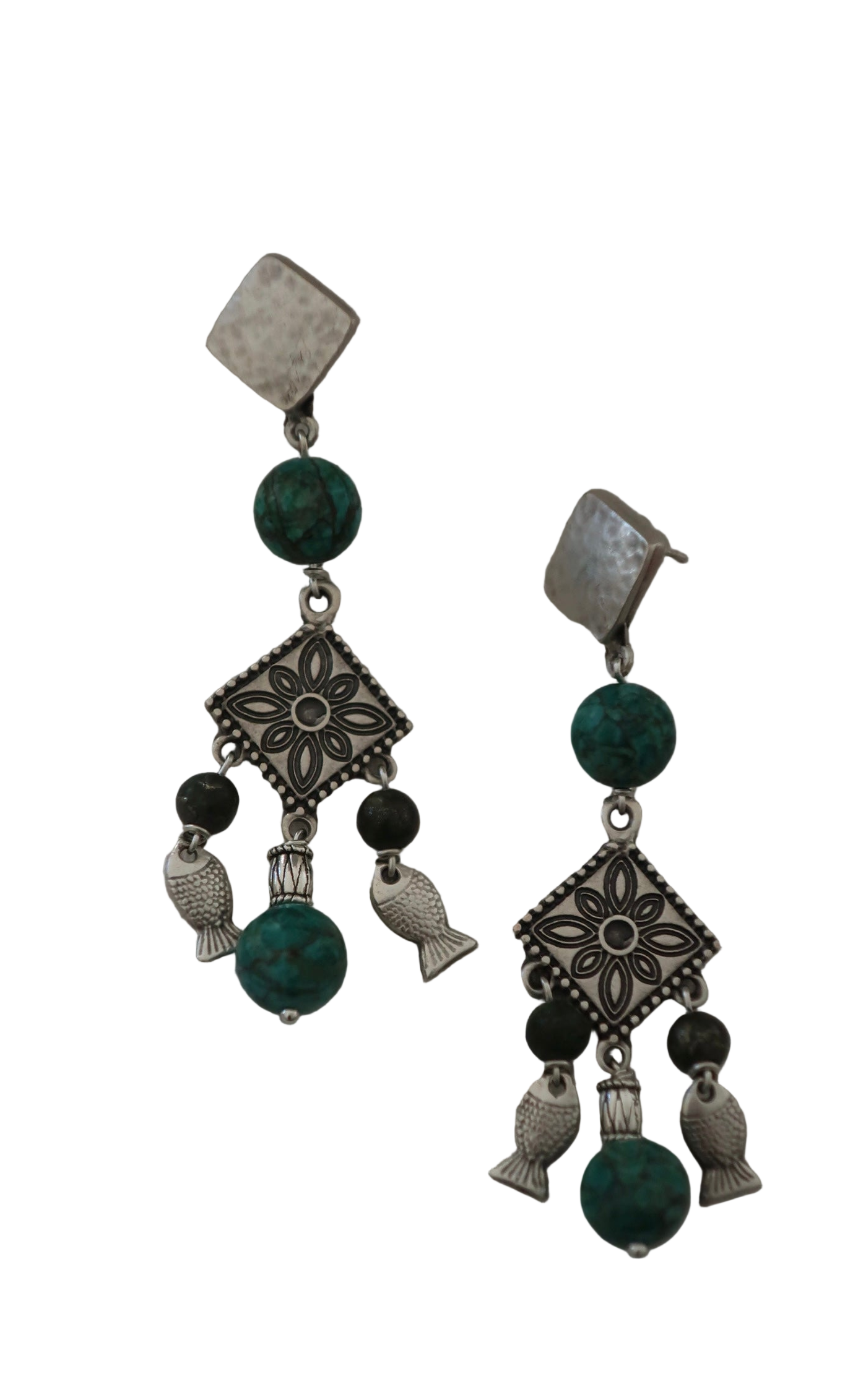 Turquoise stone fish with silver details and a turquoise stone bead cool, effortless, and made to go with anything