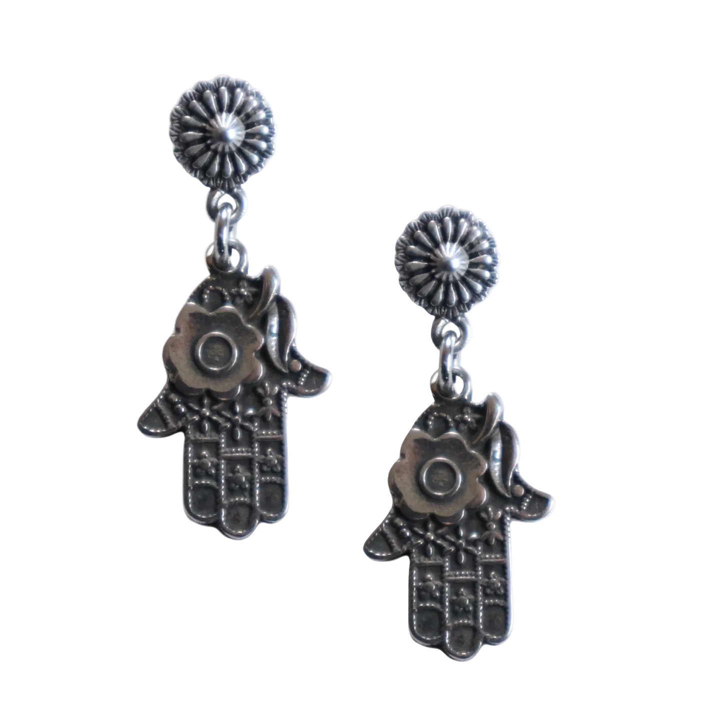 The Hamsa is known as a symbol of protection, meant to ward off negative energy and invite luck, health, and happiness. Our Hamsa Fleur Earrings pair this timeless meaning with soft floral accents and an antique finish, creating a piece that feels both symbolic and beautifully wearable.