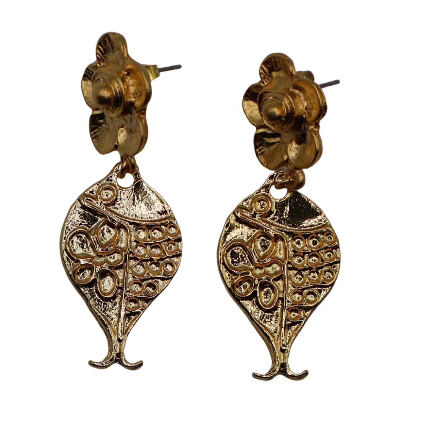 A playful mix of textures and shapes, these gold fish drop earrings come with either a round or floral top both adding their own charm. Finished with detailed fish pendants, they bring a bold yet easy-to-wear shine to any look.